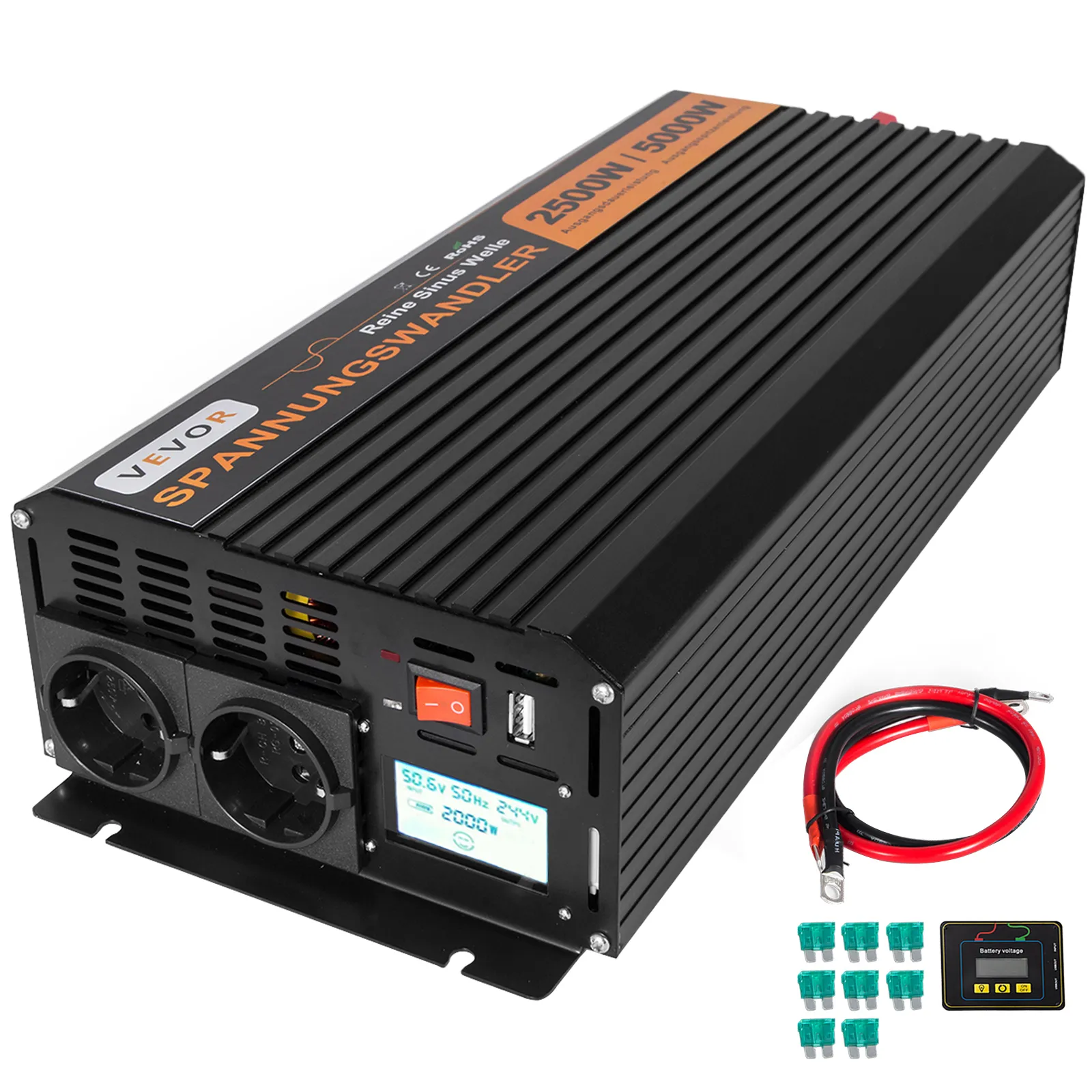 DC 12 V bis AC 230 V 2500 W Reiner Sinus-Wechselrichter mit LCD-Bildschirm