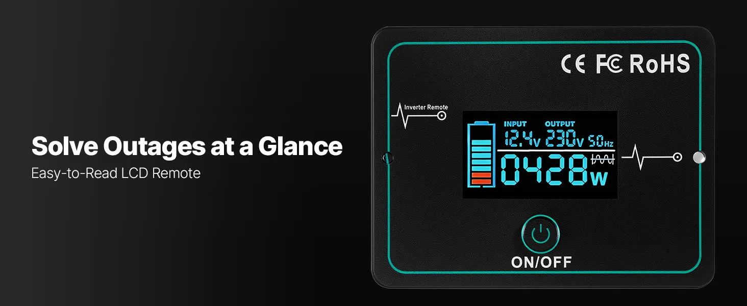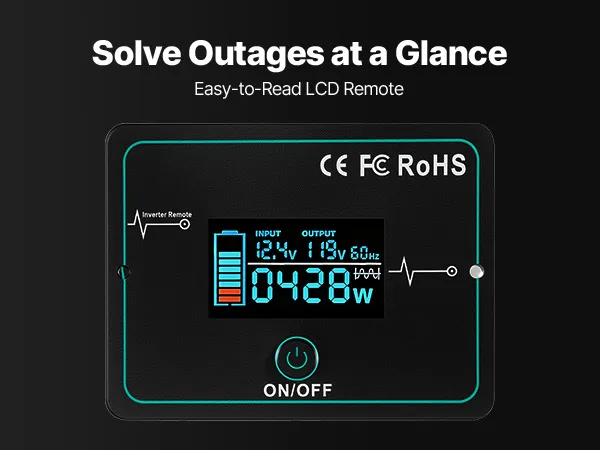 Flexible Remote Control: Equipped with a 9.8 ft / 3 m cable remote, this wave inverter offers highly responsive control and flexible placement. You can turn the inverter on/off without walking over, and install the panel wherever it's convenient for you