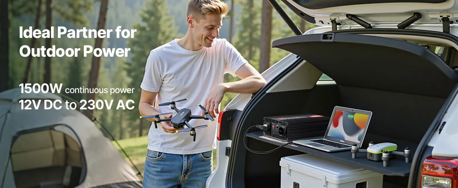 Our high-performance inverters delivering stable power for USB, AC, and Type-C devices. Lightweight aluminum alloy housing ensures durability for RVs, camping, field work, or emergency backup, while multiple protections safeguard your devices and extend inverter lifespan.