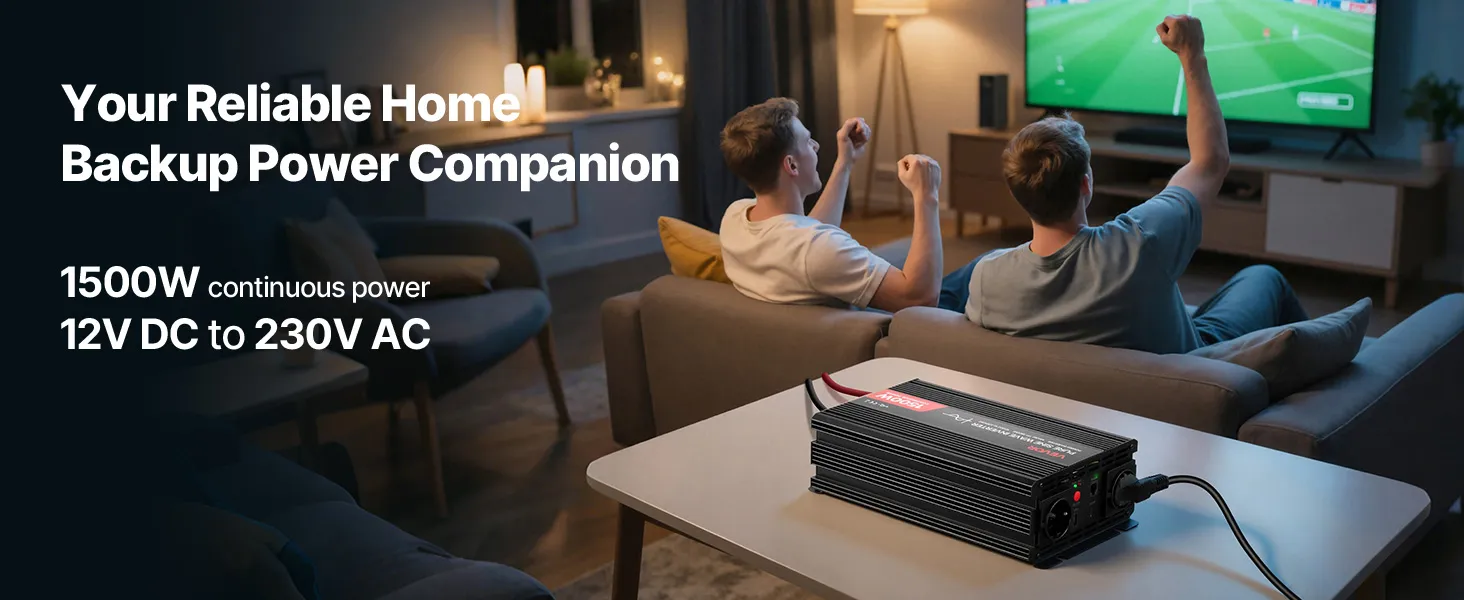 Pure Sine Wave: True pure sine wave output supports all electronics and high-power appliances. The power inverter can stably run refrigerators, air conditioners, computers, and other sensitive or high-load devices quietly, giving you peace of mind