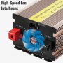 Ein eingebauter geräuschloser Lüfter dreht sich je nach Last und Temperatur effektiv mit einer anderen Geschwindigkeit. Die Lüfternetzabdeckung verhindert, dass kleine Tiere in die Maschine fliegen.