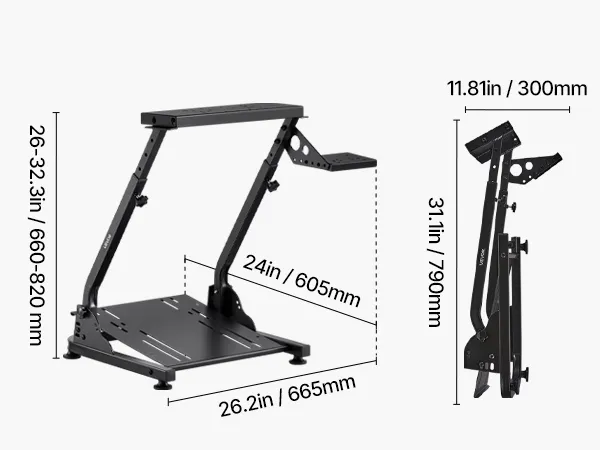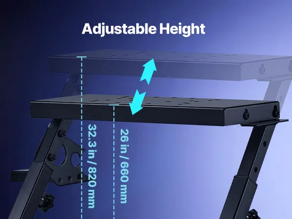 Verstellbarer Lenkradständer für Rennspiel-Fans. Komplett anpassbar an Ihren Körper für ein intensives Erlebnis. Hergestellt aus Karbonstahl mit glatter, kratzfester Oberfläche. Leicht zu reinigen – einfach abwischen und schon sieht er aus wie neu.