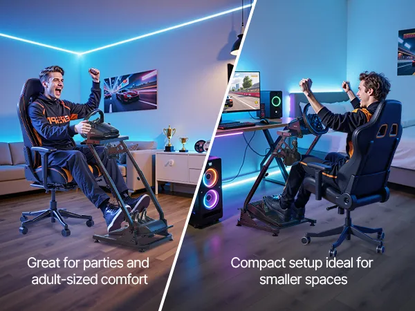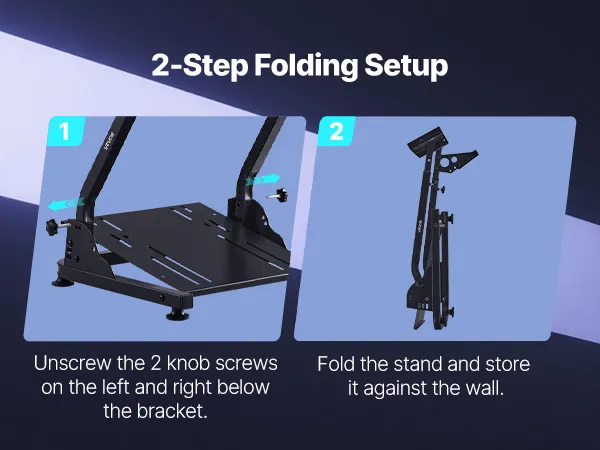Schnell zusammenklappbares Design: Dieses Rennsimulator-Cockpit lässt sich platzsparend und ohne Demontage zusammenklappen. Einfach zusammenklappen und verstauen. Egal, ob Ihr Spielbereich groß oder klein ist, dieser Rennlenkradständer passt sich an und sorgt für Ordnung.