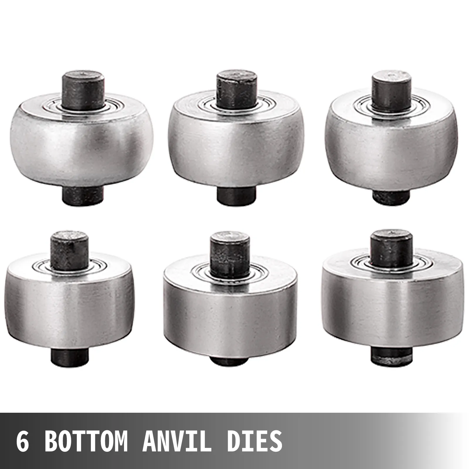 【 6 UNTENROLLEN】 - Sechs untere Amboss stempel für verschiedene Zwecke mit Lagerregal, einer Kapazität von 15 bis 3 / 8 ", gehärteten Stahlrädern und einem Rahmen aus gefaltetem Stahl mit Pulverbeschichtung.