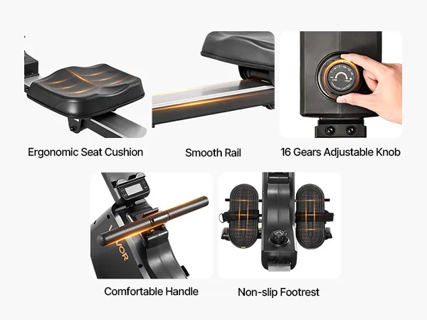 16-stufiger magnetischer Widerstand: Unser Rudergerät für zu Hause verfügt über einen magnetischen Widerstand mit 16 einstellbaren Stufen, der alles vom Aufwärmen bis zum hochintensiven Intervalltraining abdeckt. Dank der einfachen Knopfsteuerung können alle Familienmitglieder das Gerät problemlos bedienen