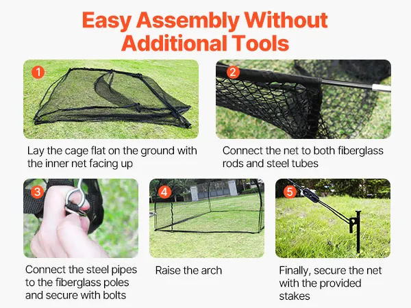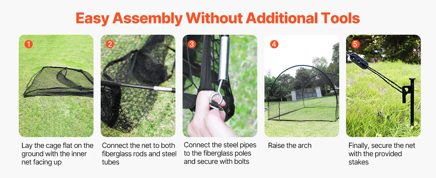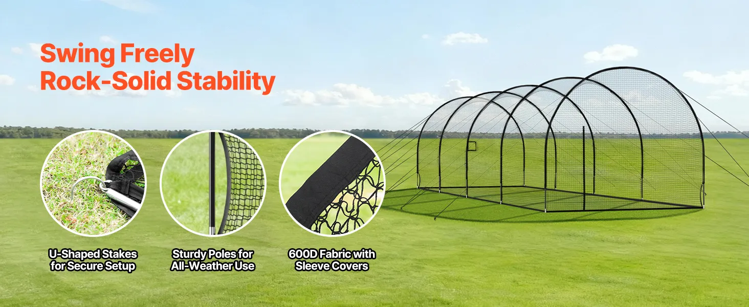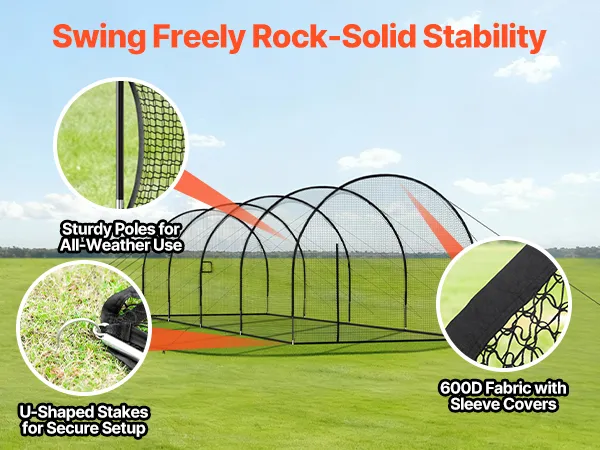 Robuste Fiberglasstangen: Dank hochtemperaturgehärteter Fiberglasstangen und verstärkter Verbindungen bietet dieser Schlagkäfig auch bei starkem Wind oder intensivem Training Stabilität. Um die Lebensdauer zu verlängern, sollte er nicht längere Zeit im Freien stehen gelassen und nach jeder Trainingseinheit sorgfältig verstaut werden