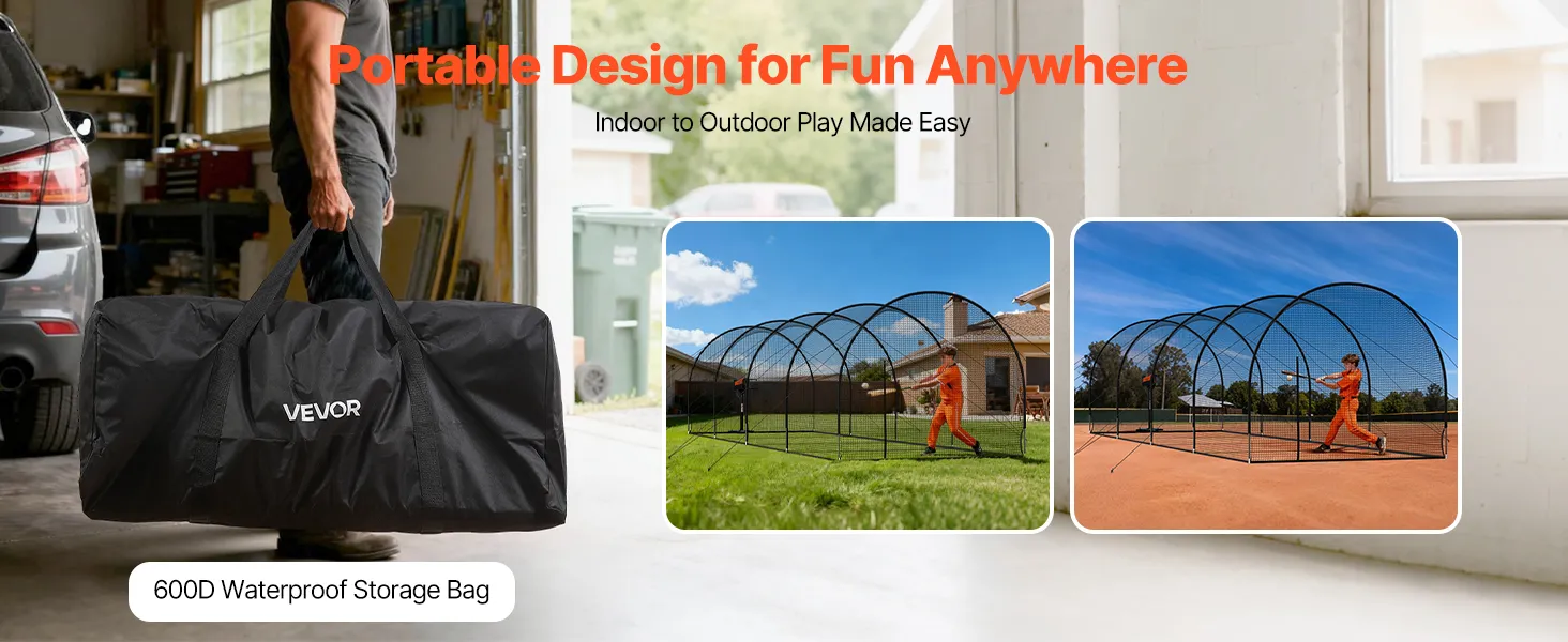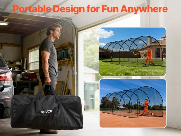 Dank seiner einfachen Konstruktion und der verständlichen Anleitung lässt sich dieses Baseball-Schlagnetz leicht aufbauen. Die mitgelieferte Aufbewahrungstasche erleichtert den Transport zu Veranstaltungsorten im Innen- und Außenbereich.