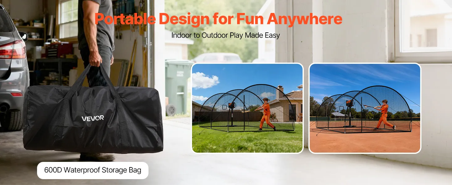 Schneller Aufbau: Dieses Softball-Schlagnetz lässt sich von nur zwei Personen mühelos aufbauen. Dank des einfachen Designs und des kompletten Zubehörs ist der Aufbau in einem Schritt möglich. Die mitgelieferte Aufbewahrungstasche sorgt für einen einfachen Transport zu Trainingsplätzen im Innen- oder Außenbereich