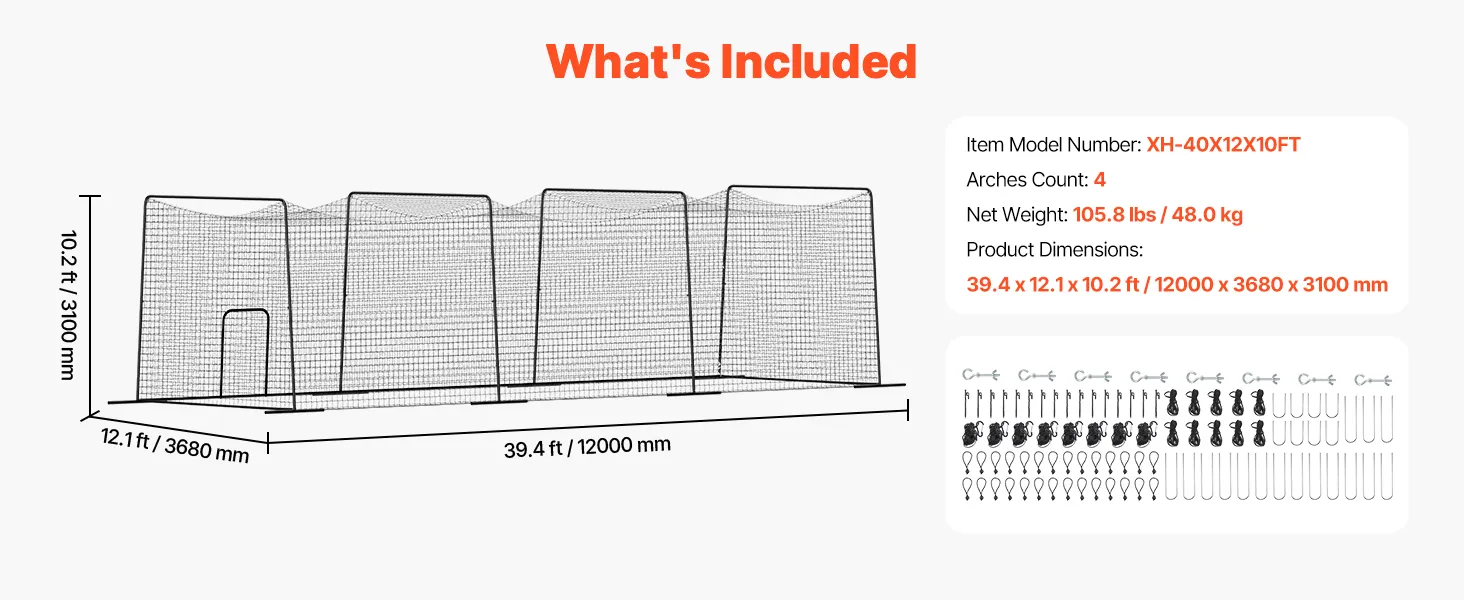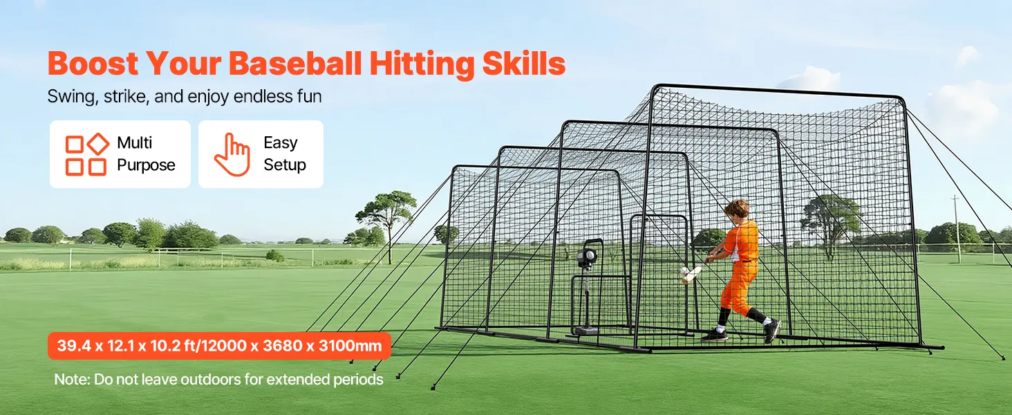 Vollwertiger Schlagkäfig: Mit Abmessungen von 1200x368x310 cm (39,4x12,1x10,2 Fuß) bietet dieses Schlagkäfignetz ausreichend Platz für professionelles und Amateur-Training. Die vollständige Umschließung verhindert, dass Bälle herausfliegen, und macht es somit ideal für Trainingseinheiten im Innen- und Außenbereich