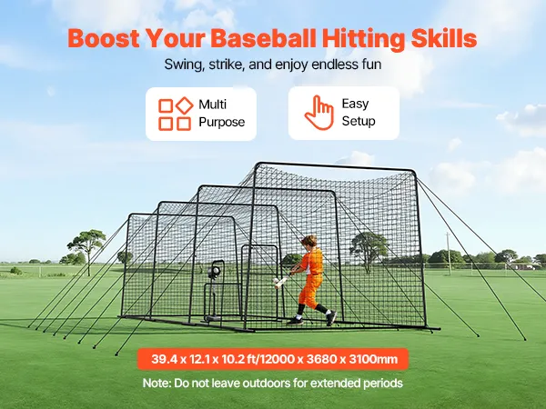 Unser Baseball-Schlagnetz zeichnet sich durch ein einfaches Design und eine verständliche Anleitung aus und lässt sich in wenigen Minuten aufbauen. Die mitgelieferten Karabinerhaken ermöglichen eine einfache Nutzung für Trainingseinheiten im Innen- und Außenbereich.