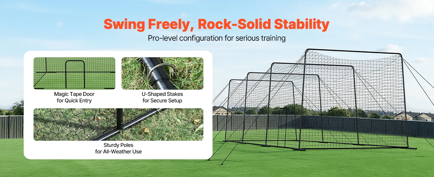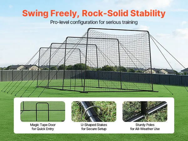 Dieser Schlagkäfig ist mit einer leicht zu schließenden Eingangstür und verstärkten Bodenankern ausgestattet und gewährleistet so einen stabilen Aufbau und einfachen Zugang. Er eignet sich für Sportler aller Leistungsstufen und hilft dabei, die Schlaggenauigkeit und Schwungkraft zu verbessern.