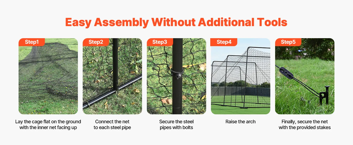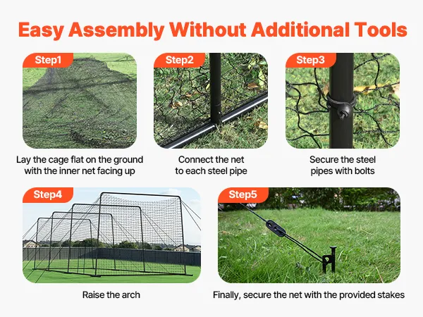 Schneller Aufbau: Dank des einfachen Designs und der mitgelieferten Teile lässt sich das Softball-Schlagnetz von zwei Personen in wenigen Minuten aufbauen. Die mitgelieferten Karabinerhaken ermöglichen eine einfache Handhabung und machen es ideal für Trainingseinheiten im Innen- und Außenbereich