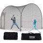 VEVOR Baseball-Schlagkäfig-Netz mit Rahmen und Netz 3,6 x 3,6 x 3 m, Baseballkäfig-Netz zum Schlagen und Aufstellen, Baseballnetz, Schlagkäfig für Jugendliche oder Erwachsene Schwarz Hinterhof