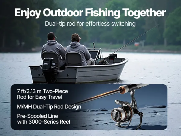 Die 2,13 m lange, zweiteilige Rute mit Rolle verfügt über eine M/MH-Doppelspitze für flexible Performance in unterschiedlichen Angelumgebungen. Die vorbespulte 3000er-Rolle benötigt keine zusätzliche Schnurvorbereitung, und die IM7-Kohlefaserrute ist leicht, robust und reagiert sensibel auf verschiedene Bedingungen.