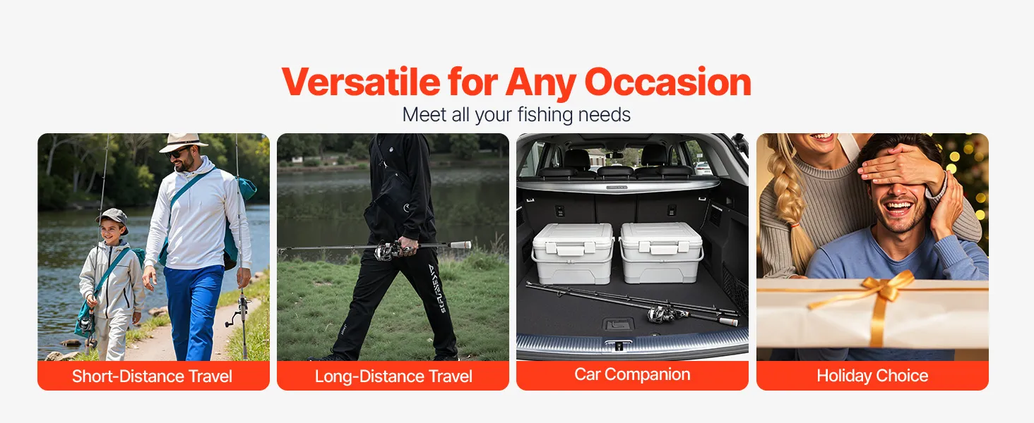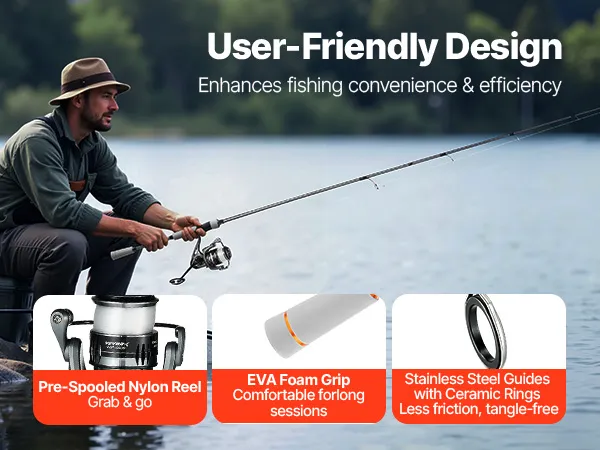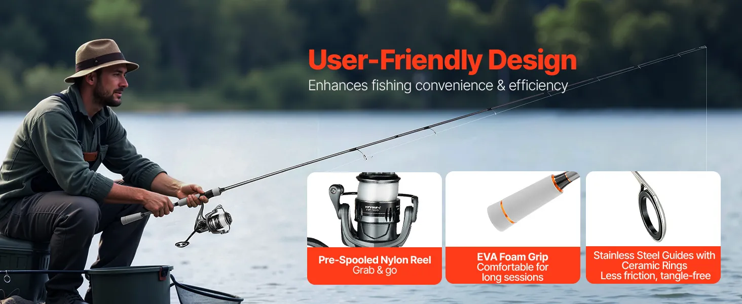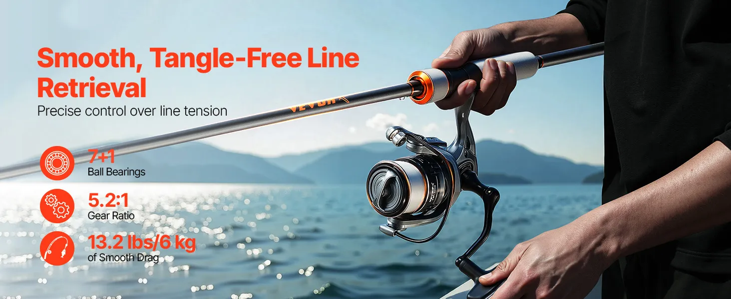 Dank ihres vielseitigen Designs ist diese VEVOR-Spinnrute ideal für jede Situation. Sie ist kompakt genug für kurze Ausflüge, passt in Ihre Reisetasche für längere Urlaube und kann im Auto für spontane Angelausflüge verstaut werden. Eine hervorragende Wahl, um Ihre Leidenschaft fürs Angeln zu teilen.