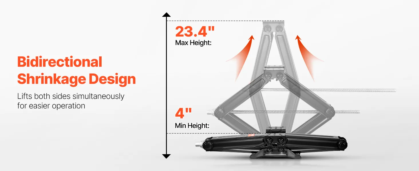 Großer Hubbereich: Dieser Scherenwagenheber zur Stabilisierung von Wohnmobilen lässt sich von 4 bis 23,4 Zoll (103-595 mm) einstellen und ermöglicht so ein einfaches Nivellieren auf unebenen Außenflächen, sodass Sie Ihr Wohnmobil ohne Sorgen parken können