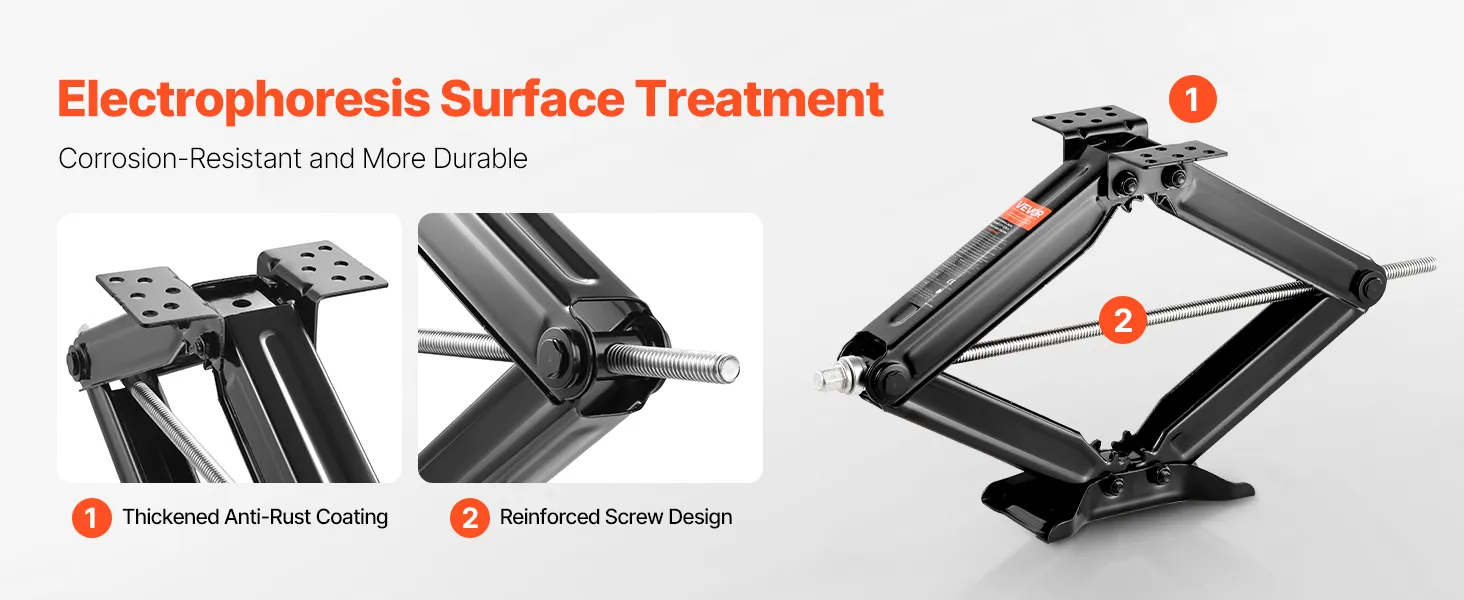 Die Oberfläche dieses Wohnmobil-Stabilisatorhebers ist galvanisch beschichtet, um Rost zu vermeiden. Dadurch eignet er sich für verschiedene Außenumgebungen. Die dickere Rostschutzbeschichtung und das verstärkte Schraubendesign sorgen für eine verbesserte Tragfähigkeit.
