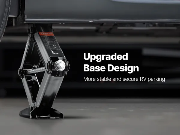 Der Wohnmobil-Wagenheber verfügt über eine verbreiterte Basis, die für mehr Stabilität beim Langzeitparken sorgt und Verformungen unter starkem Druck vermeidet.