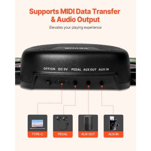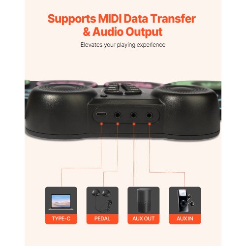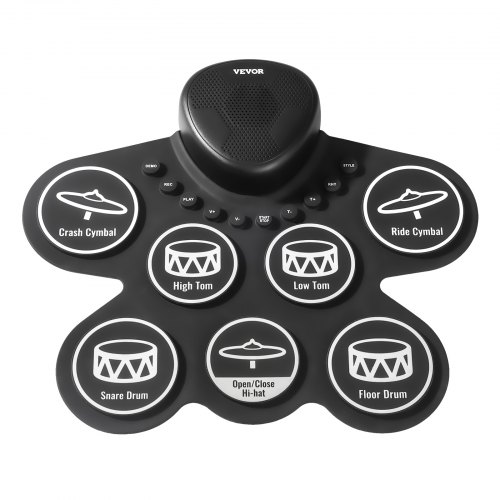VEVOR 7-Pad-Elektronik-Schlagzeug, aufrollbares E-Drum Set mit Kopfhöreranschluss, zwei Fußpedalen, zwei Drumsticks, Lautsprechern, MIDI, Instrumentalspielzeug für Kinder ab 3 Jahren, Schwarz