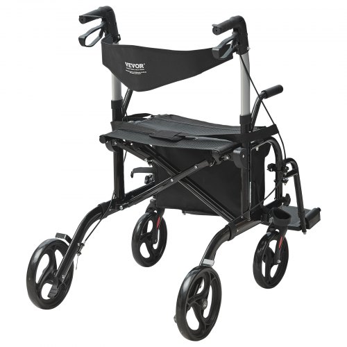 VEVOR 2-in-1 Rollator und Transportstuhl zusammenklappbare Rollator-Rollstuhl-Kombination und Fußstützen leichter Aluminium-Rollator mit verstellbarem Griff All-Terrain-Räder 136 kg Schwarz