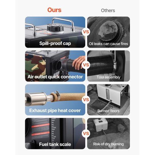VEVOR 8 kW Dieselheizung 12 V / 24 V All in One Diesel-Luftheizung mit Bluetooth App-Steuerung & Fernbedienung & Anzeigebildschirm & CO-Alarm, schnell aufheizende vertikale tragbare Dieselheizung