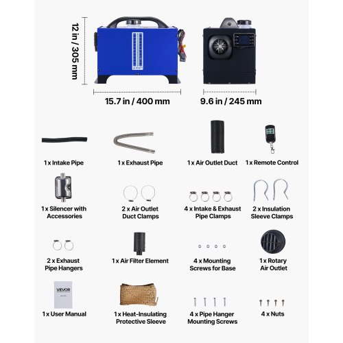 VEVOR 8 kW Dieselheizung 12 V / 24 V All in One Diesel-Luftheizung mit Bluetooth-App & Fernbedienung & Anzeigebildschirm & CO-Alarm, schnell aufheizende horizontale tragbare horizontale Dieselheizung