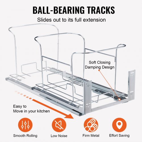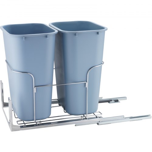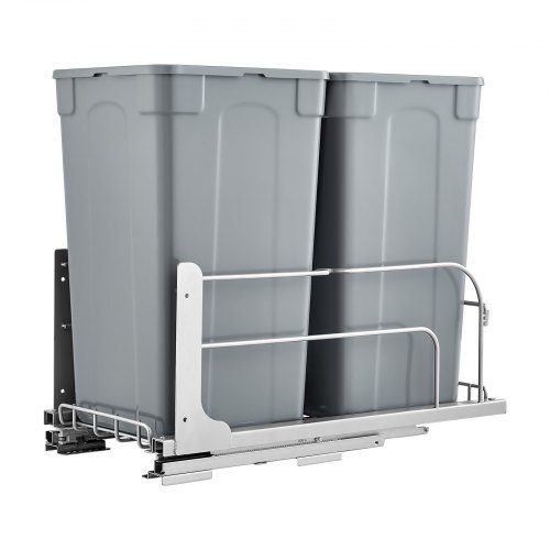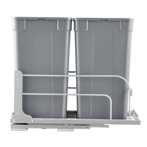 VEVOR Ausziehbarer Abfallsammler, 35 L x 2 Doppelbehälter, Untermontierter Küchenabfallbehälter mit Schiebe- und Türmontagesatz, 50 kg Tragkraft, Ausziehbarer Mülleimer für Küchenschrank, Spüle usw.