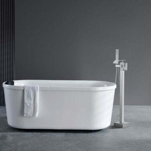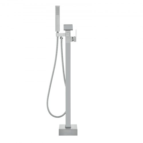 VEVOR Freistehender Badewannenhahn, Bodenmontage Wannenfüller, Duschmischbatterien, 2 Wassermodi, Badewannenarmatur mit Handbrause 360° Schwenkbarer Auslauf, zum Baden und Duschen Wasserfall