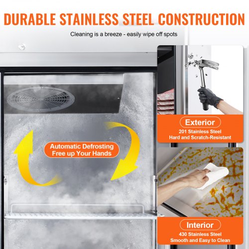 VEVOR Gewerbekühlschrank 570 L, Kühlschrank mit Einzeltür, Edelstahl-Kühlschrank mit automatischer Abtauung, 3 Ablagen, Temperaturregelung von -2 ~ + 8 °C und 4 Rädern