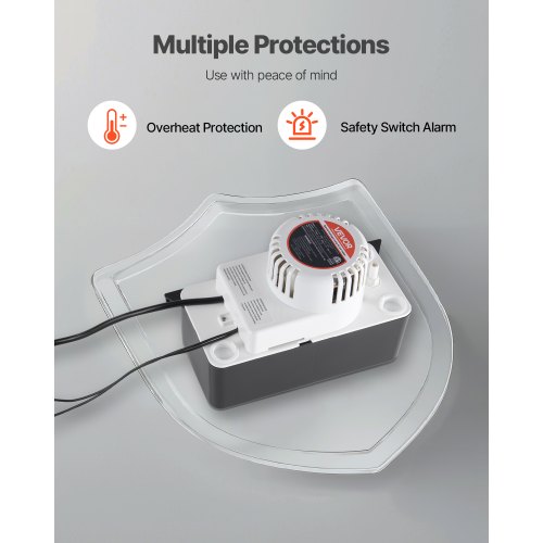 VEVOR Kondensatabsaugpumpe Kondensatpumpe 1/50 PS 1,89 L Tank, automatische AC-Kondensatpumpe mit Schwimmerschalter und 6 m Schlauch für Klimaanlage Luftentfeuchter, Eisbereiter-Wasserablauf Schwarz