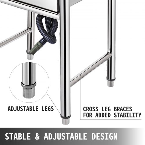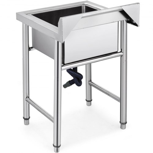 VEVOR Edelstahl-Waschbecken, 1 Fach, Freistehendes Waschbecken mit Werkbank-Wasserhahn und Beinen, 500 x 330 x 220 mm Kommerzielle Einzelspülbecken für Garage, Restaurant, Wäscherei