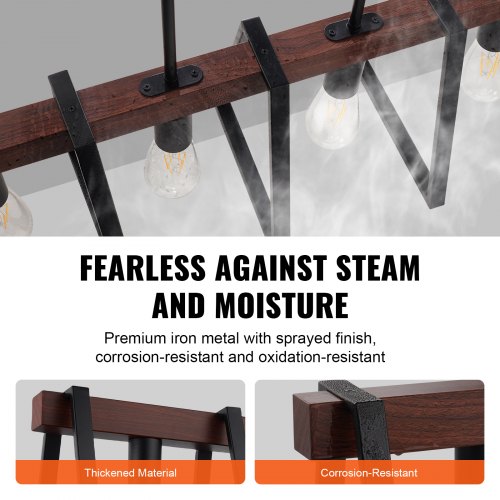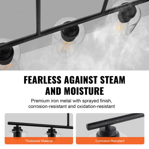VEVOR 4-flammige Pendelleuchte für Kücheninseln, 60 W, verstellbare Esszimmerleuchte mit 2 x 6 Zoll und 6 x 12 Zoll langen Stangen, lineare Kronleuchterbeleuchtung im industriellen Metallrahmen-Stil