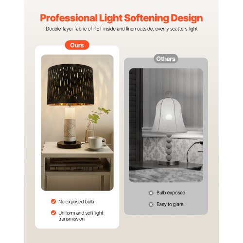 VEVOR Lampenschirm Trommel 290 x 320 x 245 mm (oben x unter x hoch), 2 Ersatzschirme aus Leinen + PVC Lampenschirm mit Harfe für Tischlampen Pendelleuchten (helles Leinen mit schwarzem Rand)