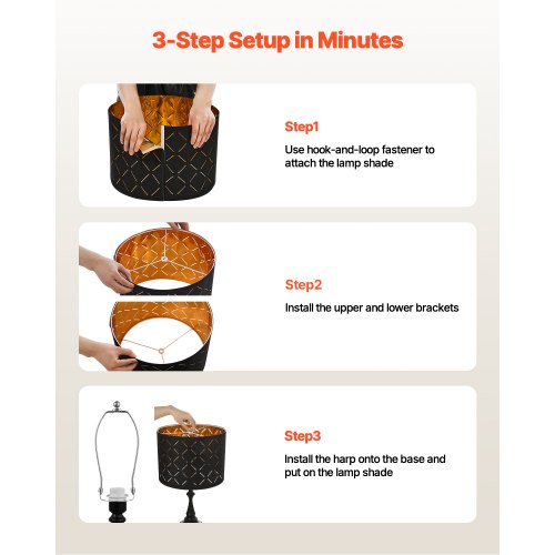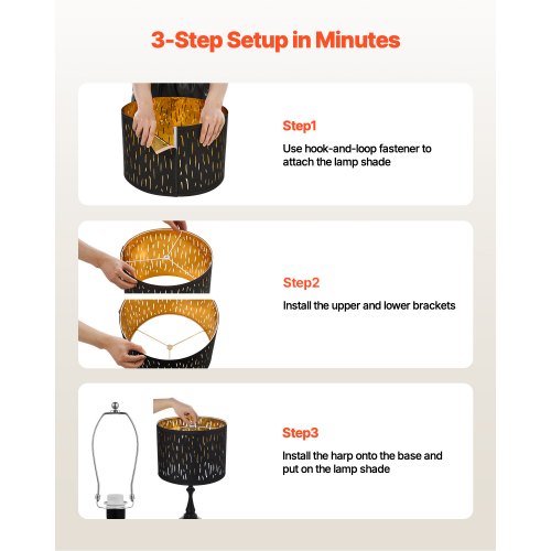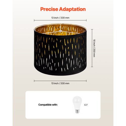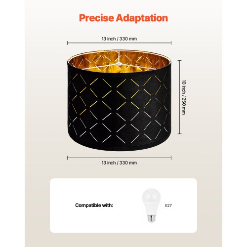 VEVOR Lampenschirm Trommel 33x33x25 cm (oben x unter x hoch), 2 mittelgroße Ersatzschirme aus TC-Gewebe + PET, Lampenschirm mit Harfe für Tischlampen Stehlampen (schwarzes Diamant-Hohldesign)