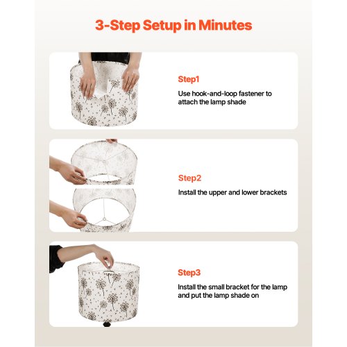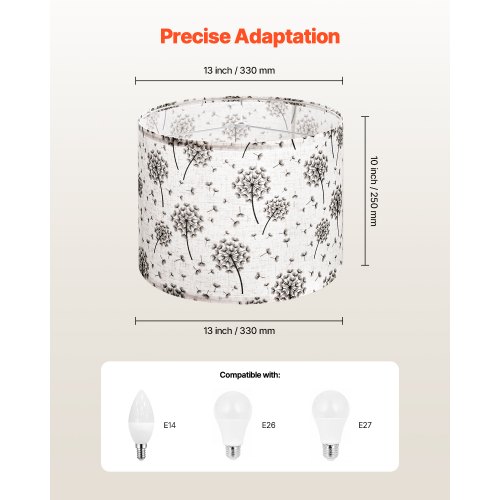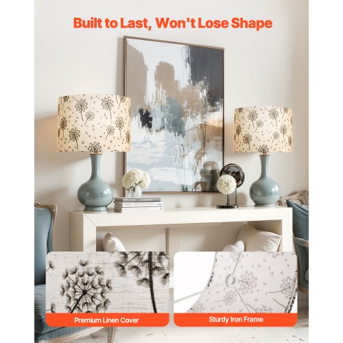 VEVOR Lampenschirm Trommel 33 x 33 x 25 cm (oben x unter x hoch), 2 Stk. mittelgroße Ersatzschirme aus Leinen + PVC, Lampenschirm für Tischlampen Stehlampen Pendelleuchten (helles Löwenzahnmuster)