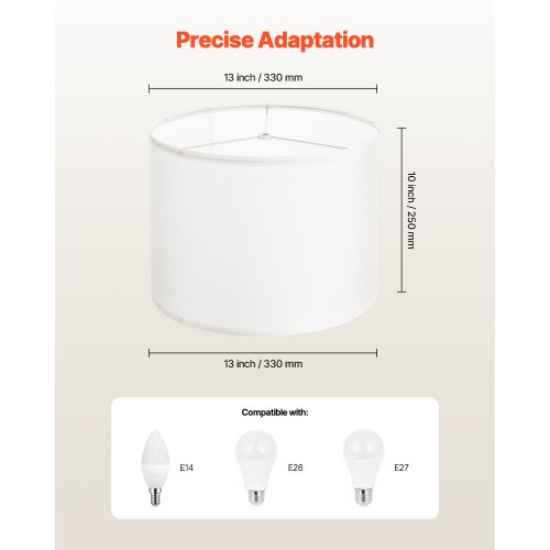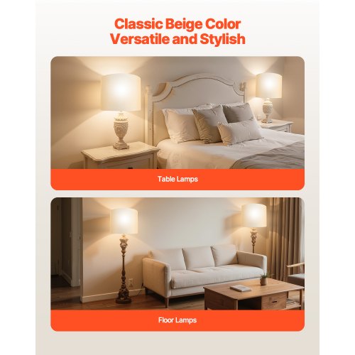 VEVOR Lampenschirm Trommel 33 x 33 x 25 cm (oben x unter x hoch), 2 Stk. mittelgroße Ersatzschirme aus Leinen + PVC, Lampenschirm für Tischlampen Stehlampen Pendelleuchten (cremefarben)