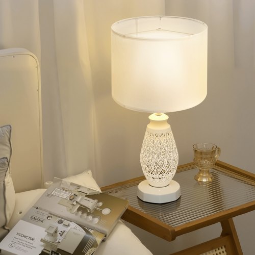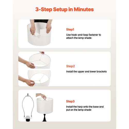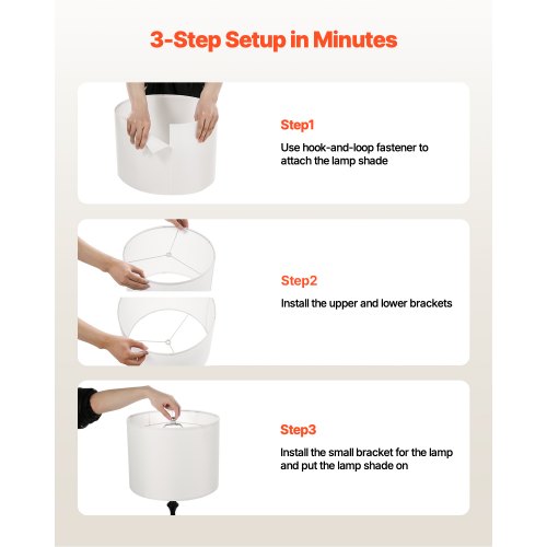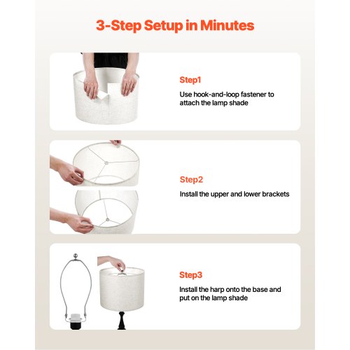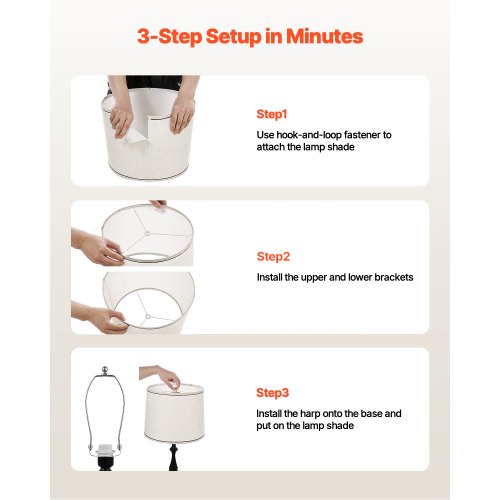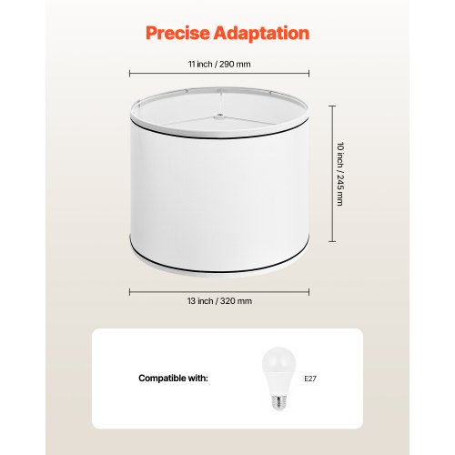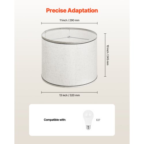 VEVOR Lampenschirm Trommel 290 x 320 x 245 mm (oben x unter x hoch), 2 mittelgroße Ersatzschirme aus Leinen + PVC, Lampenschirm mit Harfe für Tischlampen Stehlampen (weiß mit schwarzem Rand)