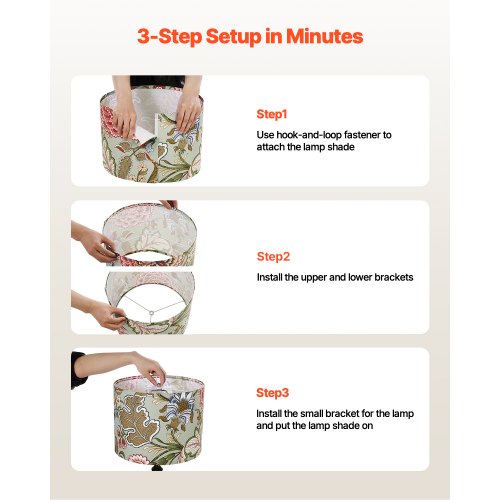 VEVOR Lampenschirm Trommel 33 x 33 x 25 cm (oben x unter x hoch), 2 Stk. mittelgroße Ersatzschirme aus Leinen + PVC, Lampenschirm für Tischlampen Stehlampen Pendelleuchten (Dunkel geblümt)