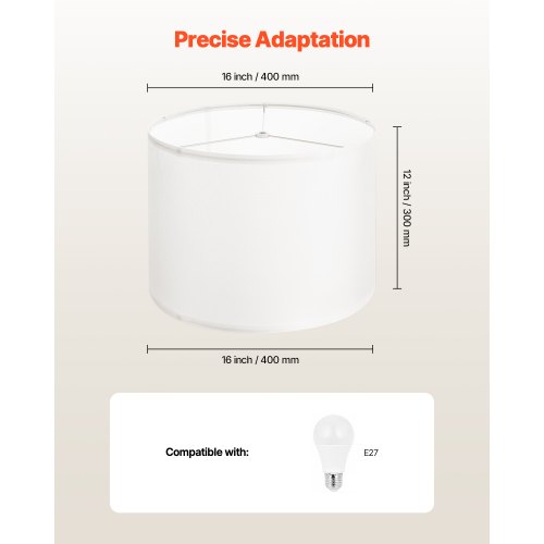 VEVOR Lampenschirm Trommel 40 x 40 x 30 cm (oben x unter x hoch), 2 Stk. große Ersatzschirme aus Leinen + PVC, Lampenschirm mit Harfe für Tischlampen Stehlampen Pendelleuchten (Cremeweißes Leinen)