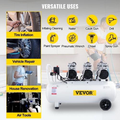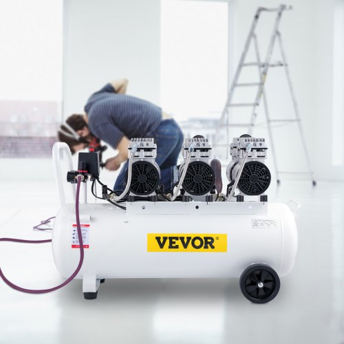 VEVOR Silent Druckluftkompressor 2800U/min Flüsterkompressor 70dB Ölfreier Kompressor mit 2 Rädern 24L Druckbehälter 6-8Bar 1450W (2PS) 3,5 MPa  Autoreparaturen Sprühlackierung Holzarbeiten