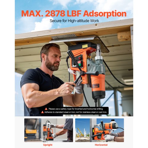 VEVOR Magnetbohrmaschine 1450 W Motor, 2 Zoll Bohrdurchmesser, 2878 lbf tragbare elektrische Magnetbohrmaschine, mit 6 Kernbohrern, Bohrmaschine für Metalloberflächen, Heimwerkerbereich