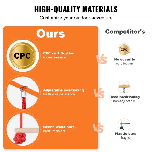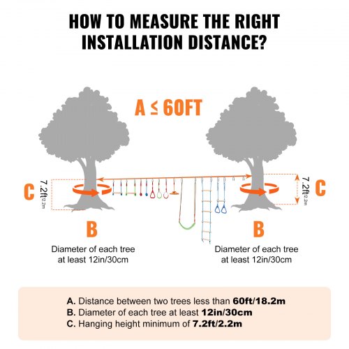 VEVOR Slackline Hindernisse Set 2 x 18,3 m Slacklines 2 x 1,5 m Baumschutz, 226,8 kg Tragkraft Ninja Hinderniskurs, Outdoor-Spielset-Ausrüstung, Hinterhofspielzeug-Trainingsausrüstungsset Orange