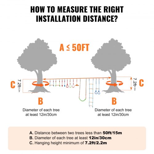 VEVOR Ninja Slackline Hindernisse Set 2 x 15,24 m Slacklines, 226,8 kg Tragkraft Ninja Hinderniskurs, Outdoor-Spielset-Ausrüstung, Hinterhofspielzeug-Trainingsausrüstungsset mit 12 Hindernissen
