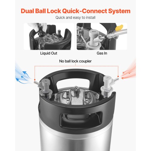 VEVOR Corny Keg, 19 L Ball Lock Keg, SUS304 Cold Brew Kegs Fass Eimer mit zwei Gummigriffen & robustem Gummiboden, Brauausrüstung für Heimbraupartysv Bar Bistro Restaurant Café, 2 Stk.