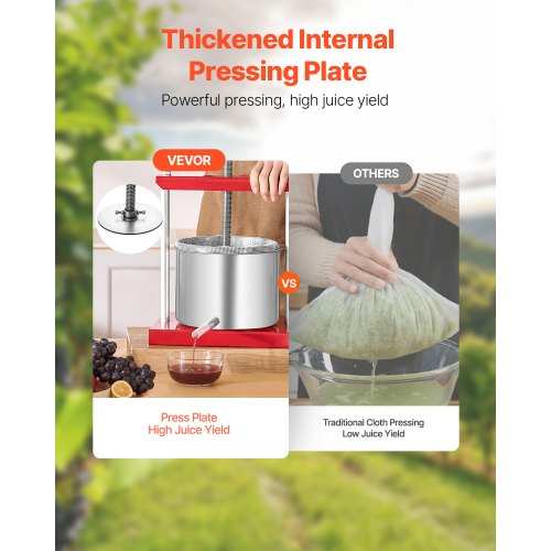 VEVOR 2 L Obstpresse Apfelpresse Fruchtpresse mit T-Griff, Beerenpresse 14 x 13 cm Apfelpresse Manueller Entsafter Fruchtpresse Mechanische Edelstahl Presse Geeignet für Saft Fruchtpüree usw.