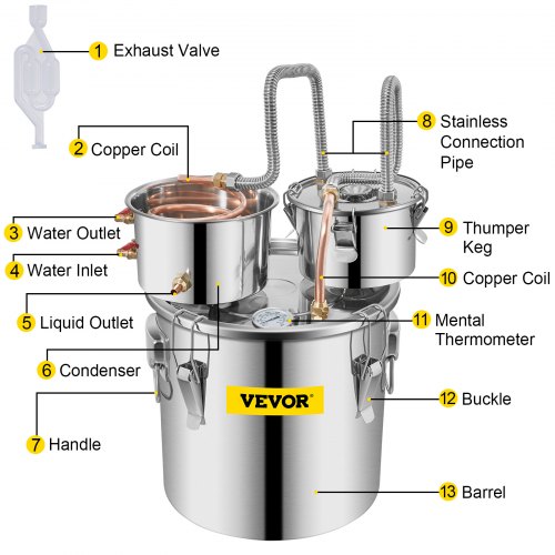 VEVOR Distillieranlage, 30 L Wasser Alkohol Destillierer Ф35 x 35 cm Laufgröße, Destilliergerät Alkohol 5 kg Ausgabemenge Alkohol Destillieranlage, Destillieranlage Schnapsbrennen 1-2 Std.