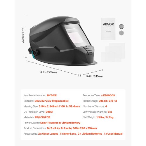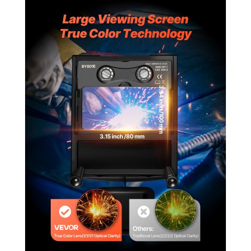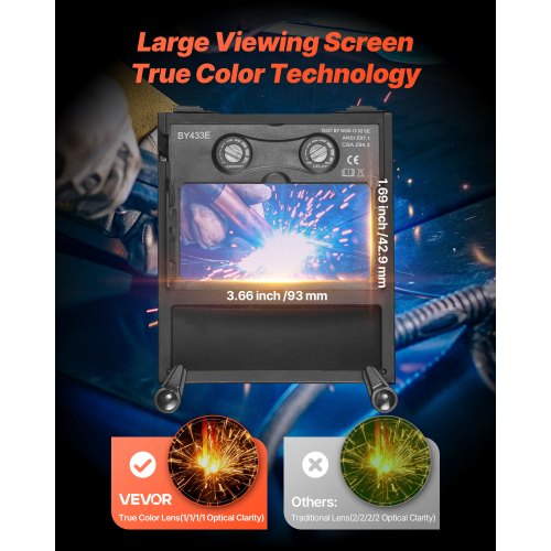 VEVOR Schweißlinse, automatische Abdunklung, 108x51 mm, Tönung 9 Echtfarben-Schutzbrille mit Dual-Lichtbogensensoren, kompatibel mit den meisten Schweißhelmen für WIG-, MIG-, MMA-, ARC-Anwendungen