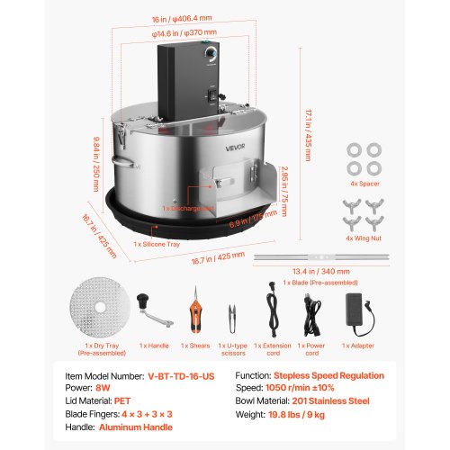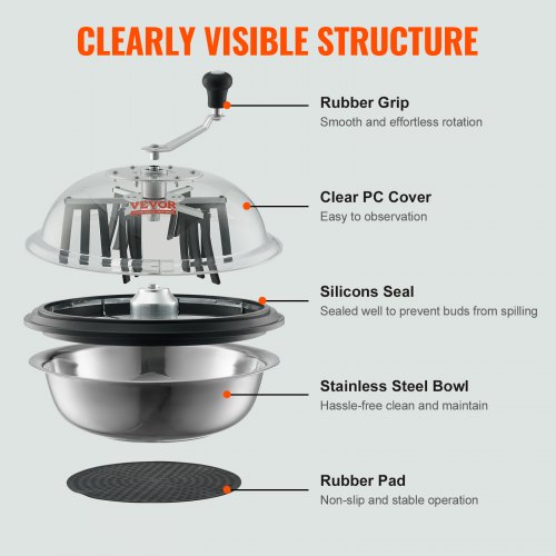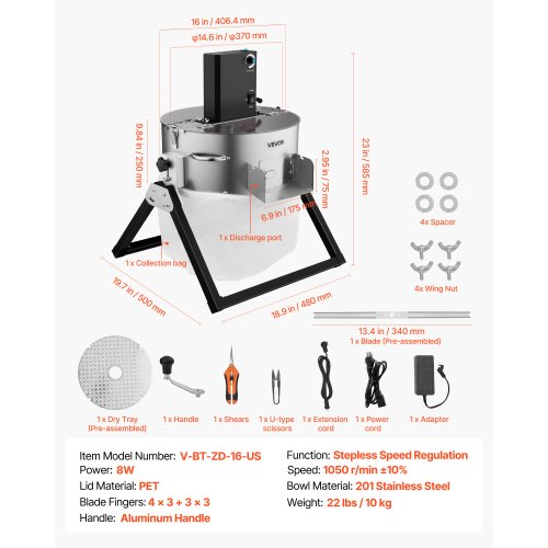 VEVOR 406,4 mm Erntemaschine Manuell Trimmer Knospen Trimmer 2 Arten von Trimmgittern zum Schneiden von nassen/trockenen Pflanzen Tumble Cutter Bowl Knospenblatt Trimmer Erntemaschine Grow