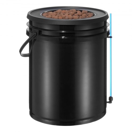 VEVOR DWC Hydroponics Grow System, Hydroponisches Anbausystem mit Top-Drip-Kit, 5-Gallonen-Tiefwasserkultur mit Luftpumpe, Luftstein und Wasserstandsanzeige für Blattgemüse (1 Eimer + Top-Drip-Kit)