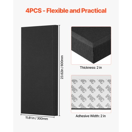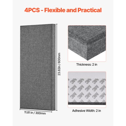 VEVOR Akustikpaneele, 4 Stück, 600x300x50 mm, Fiberglas, schallabsorbierende Platten, selbstklebende, Akustik Wandpaneele, für Studios, Büros, Heimkinos, Konferenzräume, grau